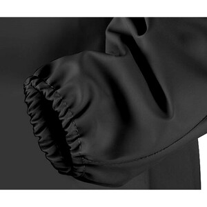 Grote wigsluiting. Verdekte sluiting met klittenband. Elastiek in rug. Capuchon met koord. Keuze uit: zoom, latexmanchet of aangelaste handschoen.