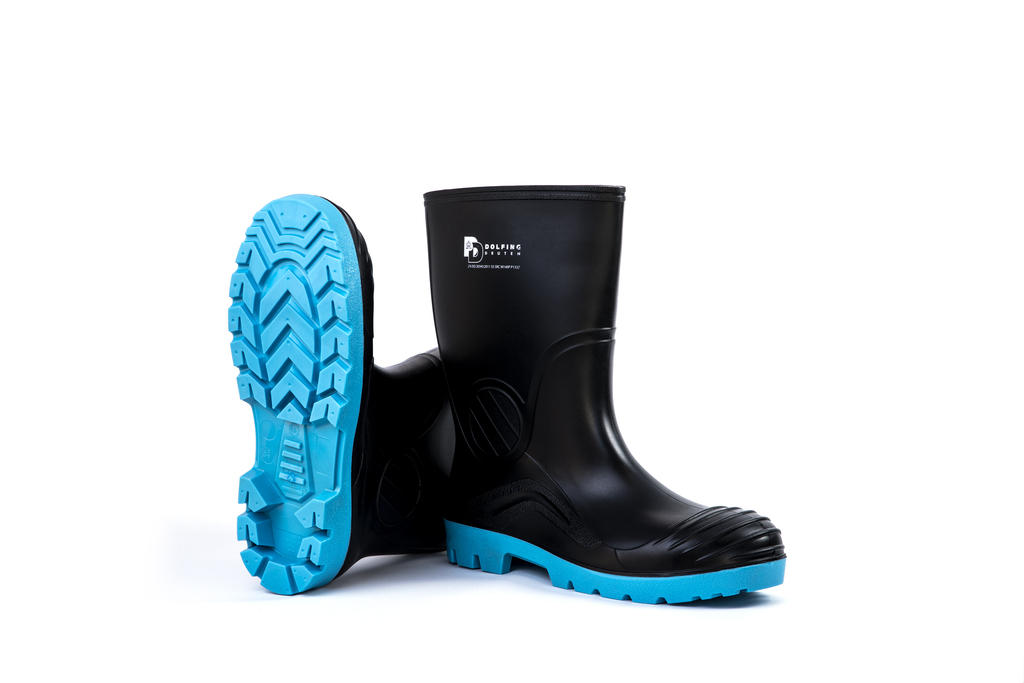Ademende en vederlichte PU lieslaarzen. Versteviging in de knie. Verstelbare riembanden met gespen. Waterdicht aangelaste Dolfing PVC laarzen.
