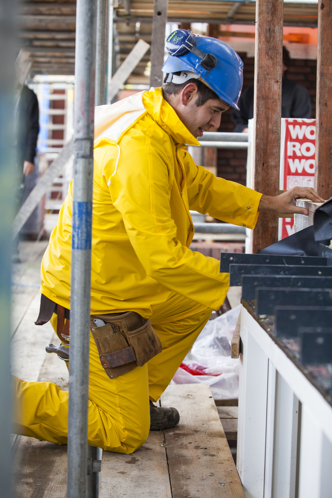 Artikelnummer: 406.12Over het hoofd aan te trekken. Drukknoop op de wigsluiting. Elastiek in de mouwen. Capuchon met kinbescherming.