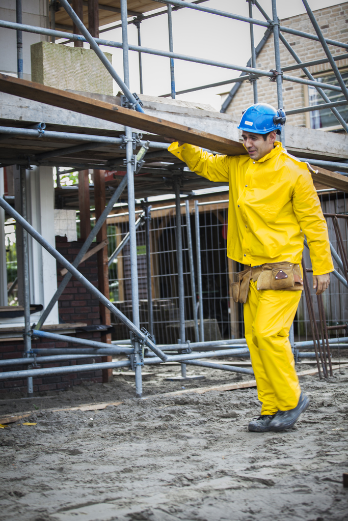 Artikelnummer: 480.12Regenjas met capuchon met koord. Drukknopen op mouw. Verdekte ritssluiting klittenband.